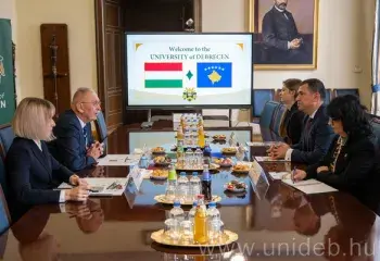 The Ambassador of Kosovo to Hungary met with Rector Zoltán Szilvássy to discuss bilateral educational and research cooperation and the possibilities of increasing the number of Kosovar students. Delfin Pllana had a meeting with students of the University of Debrecen as well.