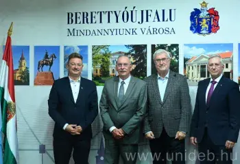 Gazdaságfejlesztési és oktatási együttműködési lehetőségekről is egyeztettek a Debreceni Egyetem vezetői Berettyóújfaluban. Szilvássy Zoltán rektort és Bács Zoltán kancellárt Muraközi István polgármester és Vitányi István, a térség országgyűlési képviselője fogadta.